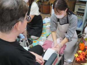 今回の施術を担当していただいたスタッフさんもとても丁寧にケアしてもらい、参加されたご利用者の表情は明るく、多くの笑顔がみられました!!