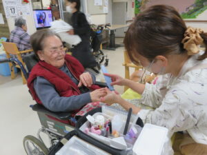 毎月恒例になりました安立荘の美容サロンはネイルケアを実施しました。