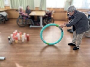 介護員から大きな声援を送られながら、輪を投げていましたよ☺