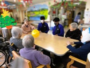 学生さんとボール遊びを楽しむご利用者の微笑ましい風景も…