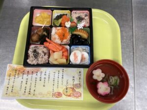 2026年01月06日 スタッフより 新年明けましておめでとうございます! お正月の様子をお伝えします!! 安立荘の調理員です(^^)/ 元旦のおせち料理です。 このように並べてみると、色鮮やかで、華やかな料理になりました。 ご利用者さんや、職員からも喜んでいただけました。 今年も厨房職員&栄養士で、安立荘の食事を盛り上げていきます(^^